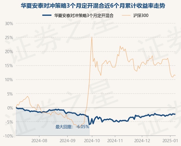 证券之星消息,1月8日,华夏安泰对冲策略3个月定开混合最新单位净值为1.2119元,累计净值为1.2119元,较前一交易日上涨0.0%。历史数据显示该基金近1个月上涨0.24%,近3个月上涨1.45%,近6个月下跌2.61%,近1年下跌0.61%。该基金近6个月的累计收益率走势如下图: