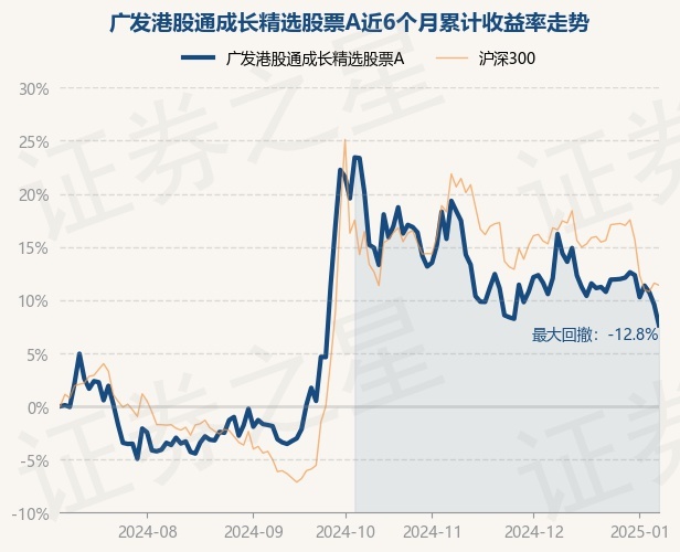 证券之星消息,1月8日,广发港股通成长精选股票A最新单位净值为0.5137元,累计净值为0.5137元,较前一交易日下跌1.78%。历史数据显示该基金近1个月下跌3.95%,近3个月下跌11.48%,近6个月上涨7.63%,近1年上涨5.18%。该基金近6个月的累计收益率走势如下图: