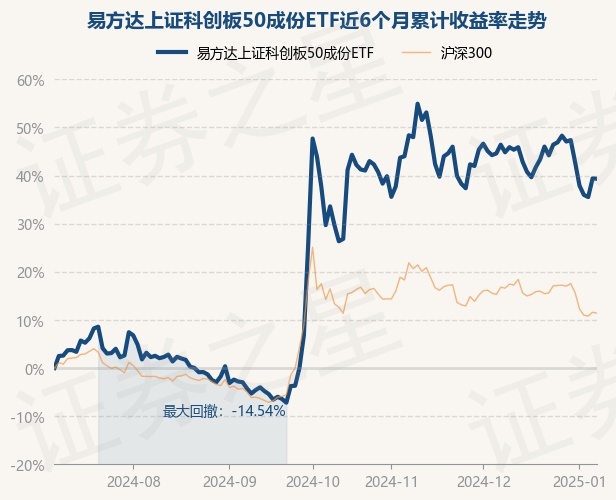 证券之星消息,1月8日,易方达上证科创板50成份ETF最新单位净值为0.9887元,累计净值为0.6927元,较前一交易日下跌0.05%。历史数据显示该基金近1个月下跌4.83%,近3个月下跌5.66%,近6个月上涨39.33%,近1年上涨23.03%。该基金近6个月的累计收益率走势如下图: