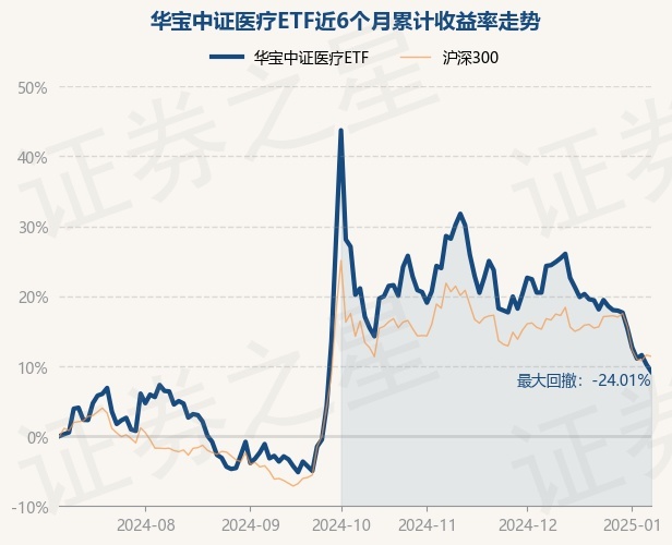 证券之星消息,1月8日,华宝中证医疗ETF最新单位净值为0.3092元,累计净值为0.9276元,较前一交易日下跌0.93%。历史数据显示该基金近1个月下跌12.16%,近3个月下跌24.01%,近6个月上涨9.22%,近1年下跌15.86%。该基金近6个月的累计收益率走势如下图: