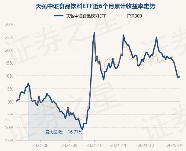证券之星消息,1月8日,天弘中证食品饮料ETF最新单位净值为0.6893元,累计净值为0.6893元,较前一交易日下跌0.03%。历史数据显示该基金近1个月下跌7.23%,近3个月下跌13.46%,近6个月上涨9.5%,近1年下跌3.08%。该基金近6个月的累计收益率走势如下图: