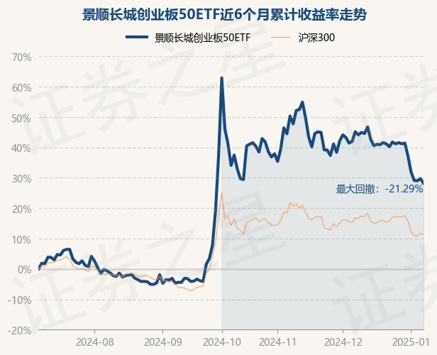 证券之星消息,1月8日,景顺长城创业板50ETF最新单位净值为0.8703元,累计净值为0.8703元,较前一交易日下跌1.18%。历史数据显示该基金近1个月下跌11.67%,近3个月下跌21.29%,近6个月上涨28.21%,近1年上涨24.31%。该基金近6个月的累计收益率走势如下图: