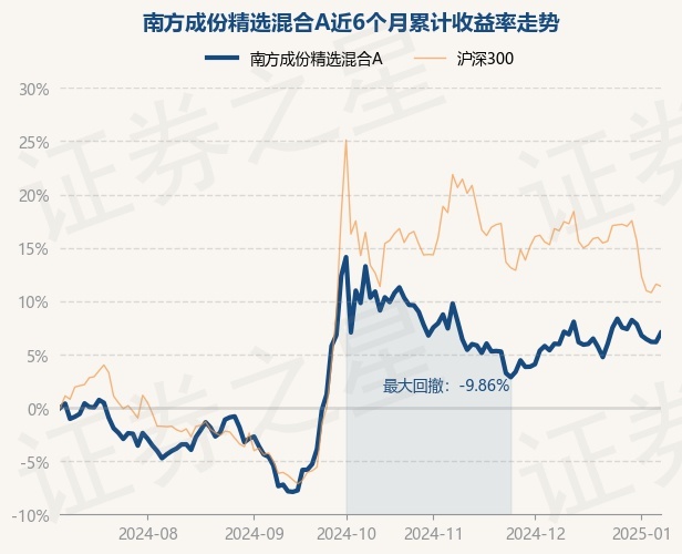 证券之星消息,1月8日,南方成份精选混合A最新单位净值为0.5971元,累计净值为1.9897元,较前一交易日上涨0.81%。历史数据显示该基金近1个月上涨0.96%,近3个月下跌6.22%,近6个月上涨7.03%,近1年上涨18.03%。该基金近6个月的累计收益率走势如下图: