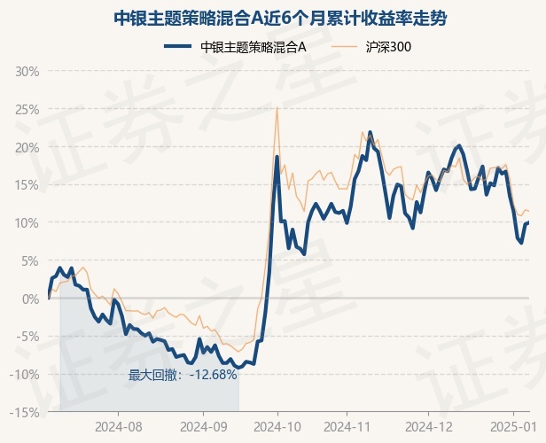 证券之星消息,1月8日,中银主题策略混合A最新单位净值为3.327元,累计净值为3.427元,较前一交易日上涨0.21%。历史数据显示该基金近1个月下跌5.99%,近3个月下跌7.33%,近6个月上涨9.91%,近1年上涨1.65%。该基金近6个月的累计收益率走势如下图: