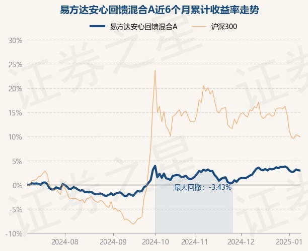 证券之星消息,1月9日,易方达安心回馈混合A最新单位净值为2.339元,累计净值为2.339元,较前一交易日下跌0.04%。历史数据显示该基金近1个月上涨0.86%,近3个月上涨1.39%,近6个月上涨2.95%,近1年上涨5.08%。该基金近6个月的累计收益率走势如下图: