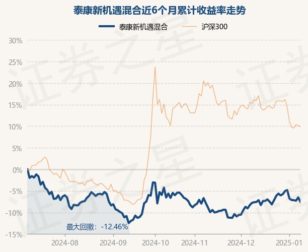 证券之星消息,1月9日,泰康新机遇混合最新单位净值为1.1372元,累计净值为1.5042元,较前一交易日下跌1.1%。历史数据显示该基金近1个月上涨0.26%,近3个月上涨0.39%,近6个月下跌7.54%,近1年上涨5.41%。该基金近6个月的累计收益率走势如下图: