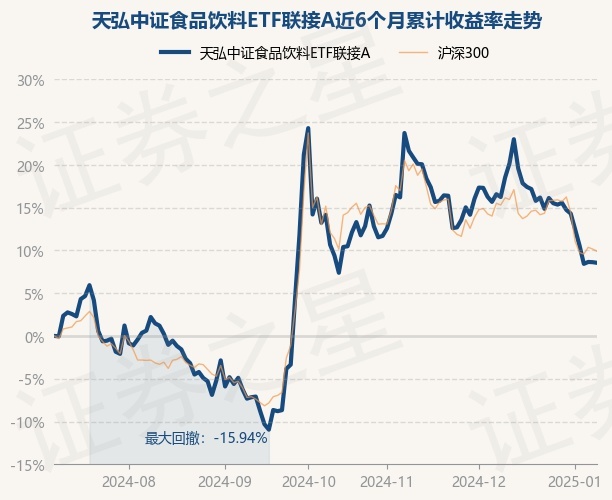 证券之星消息,1月9日,天弘中证食品饮料ETF联接A最新单位净值为2.1566元,累计净值为2.2347元,较前一交易日下跌0.07%。历史数据显示该基金近1个月下跌6.62%,近3个月下跌4.95%,近6个月上涨8.55%,近1年下跌2.37%。该基金近6个月的累计收益率走势如下图: