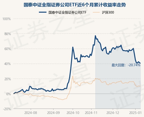 证券之星消息,1月9日,国泰中证全指证券公司ETF最新单位净值为1.0726元,累计净值为1.0726元,较前一交易日下跌0.55%。历史数据显示该基金近1个月下跌12.92%,近3个月下跌9.52%,近6个月上涨40.43%,近1年上涨25.06%。该基金近6个月的累计收益率走势如下图: