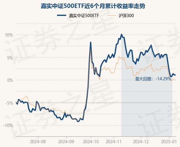 证券之星消息,1月9日,嘉实中证500ETF最新单位净值为2.178元,累计净值为1.8071元,较前一交易日下跌0.1%。历史数据显示该基金近1个月下跌8.31%,近3个月下跌5.08%,近6个月上涨12.05%,近1年上涨6.67%。该基金近6个月的累计收益率走势如下图: