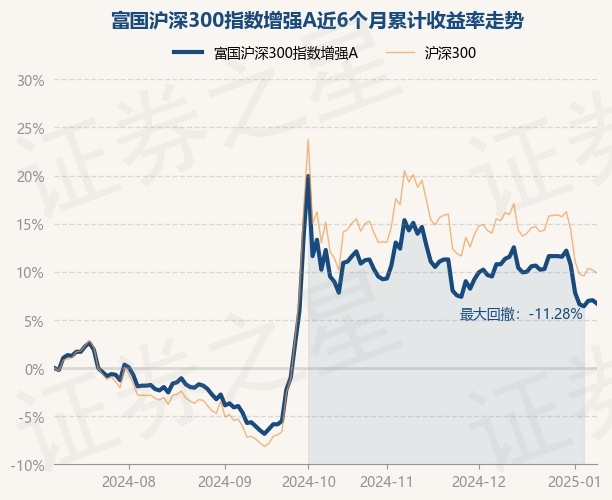证券之星消息,1月9日,富国沪深300指数增强A最新单位净值为1.514元,累计净值为2.1元,较前一交易日下跌0.33%。历史数据显示该基金近1个月下跌3.69%,近3个月下跌4.42%,近6个月上涨6.69%,近1年上涨12.9%。该基金近6个月的累计收益率走势如下图: