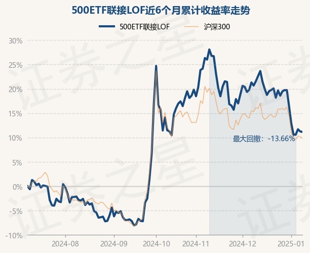 证券之星消息,1月9日,500ETF联接LOF最新单位净值为1.5303元,累计净值为1.6303元,较前一交易日下跌0.09%。历史数据显示该基金近1个月下跌7.89%,近3个月下跌4.69%,近6个月上涨11.15%,近1年上涨6.26%。该基金近6个月的累计收益率走势如下图: