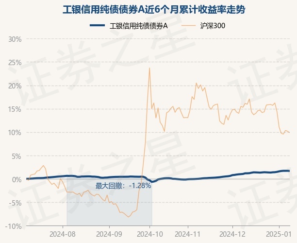 证券之星消息,1月9日,工银信用纯债债券A最新单位净值为1.4776元,累计净值为1.5186元,较前一交易日下跌0.03%。历史数据显示该基金近1个月上涨0.63%,近3个月上涨2.35%,近6个月上涨1.69%,近1年上涨4.76%。该基金近6个月的累计收益率走势如下图: