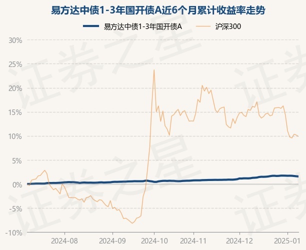 证券之星消息,1月9日,易方达中债1-3年国开债A最新单位净值为1.0079元,累计净值为1.1856元,较前一交易日下跌0.04%。历史数据显示该基金近1个月上涨0.37%,近3个月上涨1.13%,近6个月上涨2.48%,近1年上涨4.2%。该基金近6个月的累计收益率走势如下图: