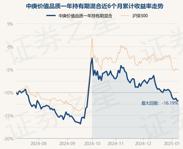 证券之星消息,1月9日,中庚价值品质一年持有期混合最新单位净值为1.3571元,累计净值为1.3571元,较前一交易日下跌0.03%。历史数据显示该基金近1个月下跌9.22%,近3个月下跌10.37%,近6个月下跌3.66%,近1年上涨3.17%。该基金近6个月的累计收益率走势如下图: