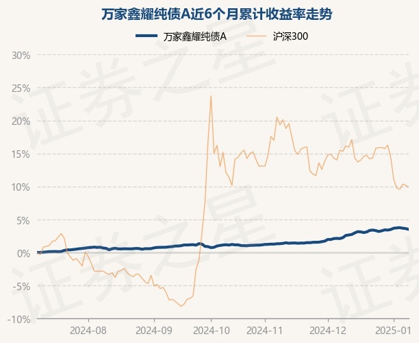证券之星消息,1月9日,万家鑫耀纯债A最新单位净值为1.0431元,累计净值为1.0945元,较前一交易日下跌0.12%。历史数据显示该基金近1个月上涨1.22%,近3个月上涨2.69%,近6个月上涨3.49%,近1年上涨6.13%。该基金近6个月的累计收益率走势如下图: