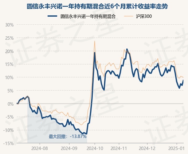 证券之星消息,1月9日,圆信永丰兴诺一年持有期混合最新单位净值为0.8799元,累计净值为0.8799元,较前一交易日上涨1.73%。历史数据显示该基金近1个月下跌3.85%,近3个月下跌4.27%,近6个月上涨8.74%,近1年上涨5.39%。该基金近6个月的累计收益率走势如下图: