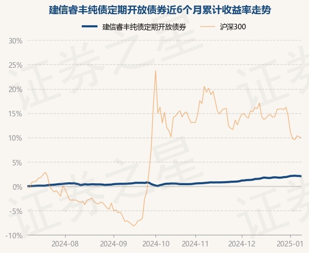 证券之星消息,1月9日,建信睿丰纯债定期开放债券最新单位净值为1.0493元,累计净值为1.254元,较前一交易日下跌0.07%。历史数据显示该基金近1个月上涨0.68%,近3个月上涨1.98%,近6个月上涨2.04%,近1年上涨4.51%。该基金近6个月的累计收益率走势如下图: