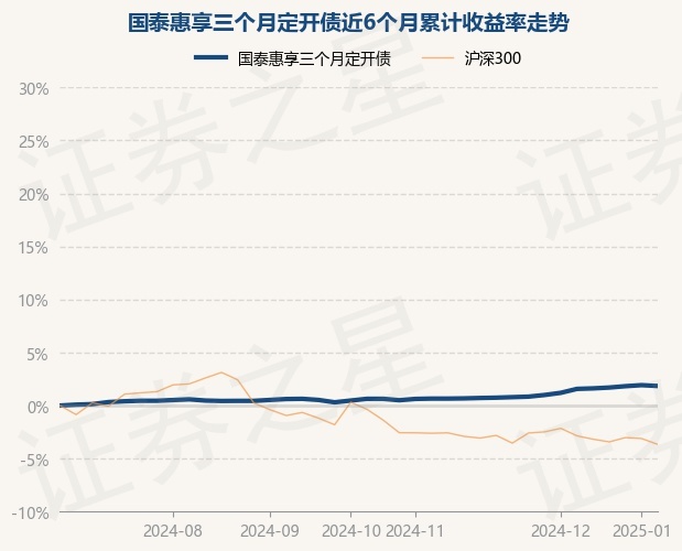 证券之星消息,1月9日,国泰惠享三个月定开债最新单位净值为1.0366元,累计净值为1.1409元,较前一交易日下跌0.08%。历史数据显示该基金近1个月上涨0.63%,近3个月上涨1.52%,近6个月上涨1.83%,近1年上涨3.56%。该基金近6个月的累计收益率走势如下图: