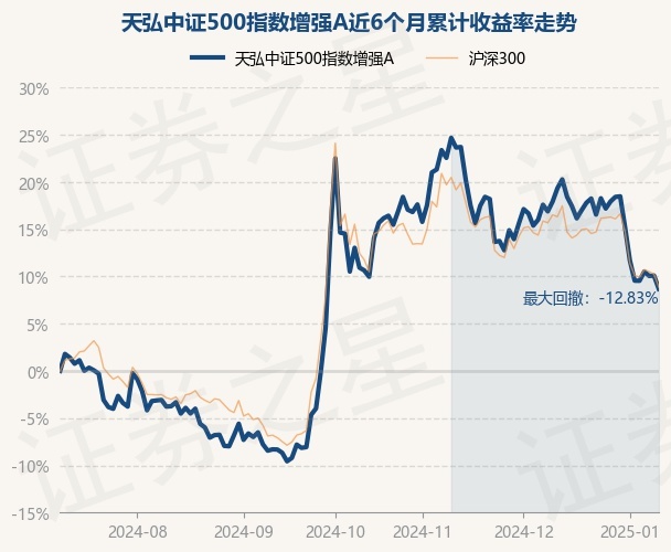 证券之星消息,1月10日,天弘中证500指数增强A最新单位净值为1.1016元,累计净值为1.1016元,较前一交易日下跌1.28%。历史数据显示该基金近1个月下跌7.84%,近3个月下跌5.11%,近6个月上涨8.68%,近1年上涨8.65%。该基金近6个月的累计收益率走势如下图: