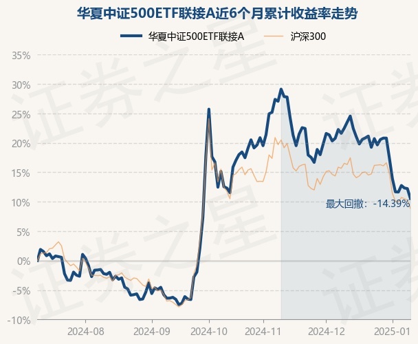 证券之星消息,1月10日,华夏中证500ETF联接A最新单位净值为0.6429元,累计净值为0.6429元,较前一交易日下跌1.5%。历史数据显示该基金近1个月下跌9.76%,近3个月下跌5.33%,近6个月上涨10.54%,近1年上涨5.46%。该基金近6个月的累计收益率走势如下图: