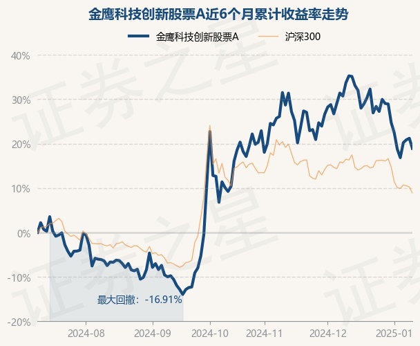 证券之星消息,1月10日,金鹰科技创新股票A最新单位净值为1.3502元,累计净值为1.6862元,较前一交易日下跌1.88%。历史数据显示该基金近1个月下跌11.06%,近3个月上涨5.57%,近6个月上涨18.93%,近1年上涨18.59%。该基金近6个月的累计收益率走势如下图:
