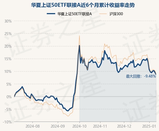 证券之星消息,1月10日,华夏上证50ETF联接A最新单位净值为0.9211元,累计净值为0.9769元,较前一交易日下跌0.71%。历史数据显示该基金近1个月下跌4.43%,近3个月下跌5.92%,近6个月上涨8.77%,近1年上涨16.39%。该基金近6个月的累计收益率走势如下图: