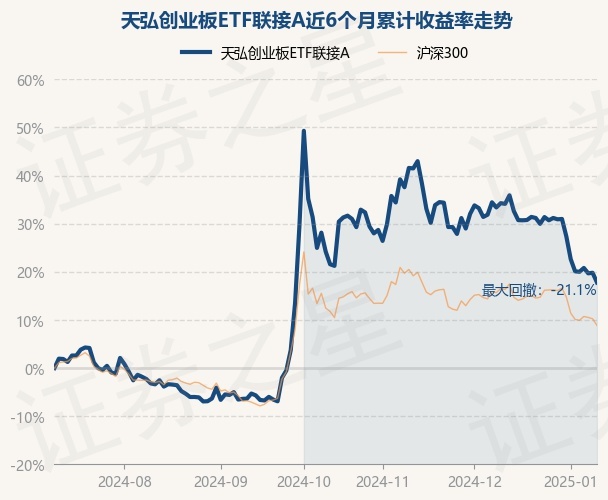 证券之星消息,1月10日,天弘创业板ETF联接A最新单位净值为0.8111元,累计净值为0.8111元,较前一交易日下跌1.67%。历史数据显示该基金近1个月下跌12.27%,近3个月下跌10.36%,近6个月上涨17.79%,近1年上涨13.03%。该基金近6个月的累计收益率走势如下图: