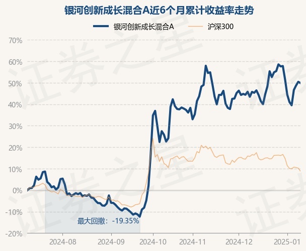 证券之星消息,1月10日,银河创新成长混合A最新单位净值为6.1907元,累计净值为6.1907元,较前一交易日下跌0.39%。历史数据显示该基金近1个月上涨2.82%,近3个月上涨15.4%,近6个月上涨49.85%,近1年上涨55.61%。该基金近6个月的累计收益率走势如下图: