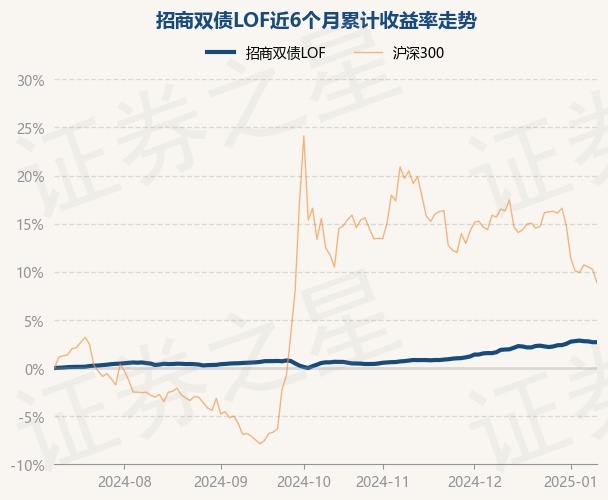 证券之星消息,1月10日,招商双债LOF最新单位净值为1.6004元,累计净值为1.7394元,较前一交易日上涨0.0%。历史数据显示该基金近1个月上涨0.78%,近3个月上涨2.48%,近6个月上涨2.68%,近1年上涨5.18%。该基金近6个月的累计收益率走势如下图: