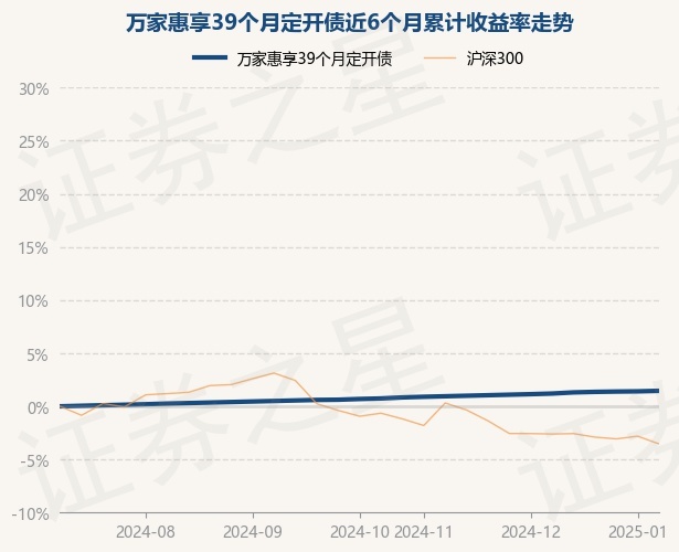 证券之星消息,1月10日,万家惠享39个月定开债最新单位净值为1.0309元,累计净值为1.148元,较前一交易日上涨0.05%。历史数据显示该基金近1个月上涨0.31%,近3个月上涨0.83%,近6个月上涨1.46%,近1年上涨2.89%。该基金近6个月的累计收益率走势如下图: