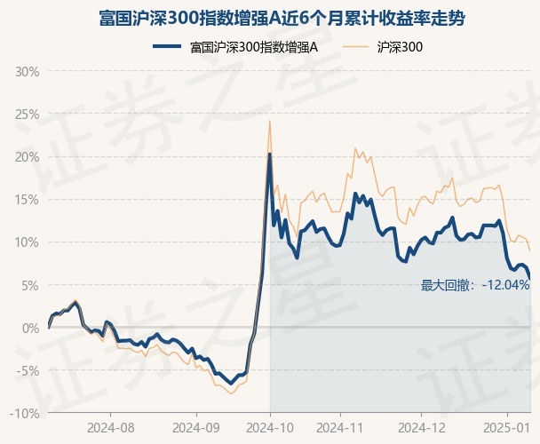 证券之星消息,1月10日,富国沪深300指数增强A最新单位净值为1.497元,累计净值为2.083元,较前一交易日下跌1.12%。历史数据显示该基金近1个月下跌5.25%,近3个月下跌6.9%,近6个月上涨5.72%,近1年上涨12.13%。该基金近6个月的累计收益率走势如下图: