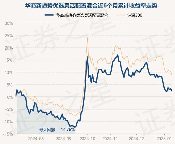 证券之星消息,1月10日,华商新趋势优选灵活配置混合最新单位净值为9.257元,累计净值为9.257元,较前一交易日下跌0.81%。历史数据显示该基金近1个月下跌8.8%,近3个月下跌5.68%,近6个月上涨2.47%,近1年上涨8.91%。该基金近6个月的累计收益率走势如下图: