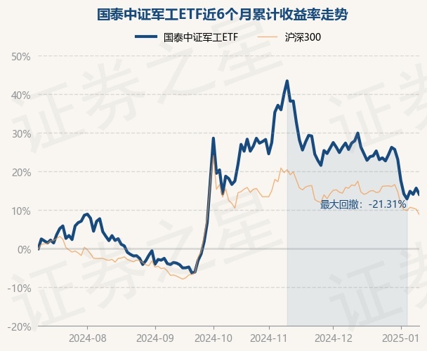 证券之星消息,1月10日,国泰中证军工ETF最新单位净值为0.9653元,累计净值为0.9653元,较前一交易日下跌1.37%。历史数据显示该基金近1个月下跌10.41%,近3个月下跌5.24%,近6个月上涨14.1%,近1年上涨10.37%。该基金近6个月的累计收益率走势如下图: