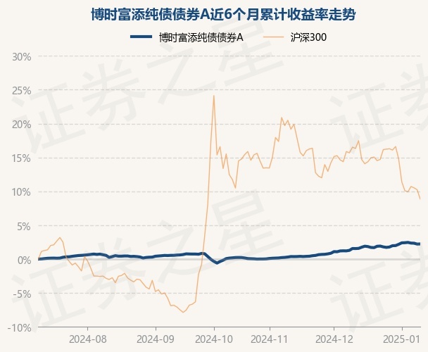证券之星消息,1月10日,博时富添纯债债券A最新单位净值为1.1119元,累计净值为1.1776元,较前一交易日上涨0.02%。历史数据显示该基金近1个月上涨0.66%,近3个月上涨2.6%,近6个月上涨2.23%,近1年上涨5.03%。该基金近6个月的累计收益率走势如下图:
