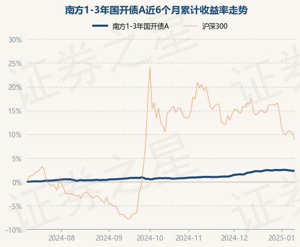 证券之星消息,1月10日,南方1-3年国开债A最新单位净值为1.0453元,累计净值为1.2053元,较前一交易日上涨0.02%。历史数据显示该基金近1个月上涨0.43%,近3个月上涨1.64%,近6个月上涨2.33%,近1年上涨4.64%。该基金近6个月的累计收益率走势如下图: