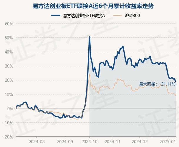证券之星消息,1月10日,易方达创业板ETF联接A最新单位净值为2.0344元,累计净值为2.0344元,较前一交易日下跌1.67%。历史数据显示该基金近1个月下跌12.15%,近3个月下跌10.16%,近6个月上涨18.74%,近1年上涨12.85%。该基金近6个月的累计收益率走势如下图: