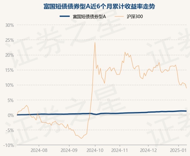 证券之星消息,1月10日,富国短债债券型A最新单位净值为1.1728元,累计净值为1.1928元,较前一交易日下跌0.02%。历史数据显示该基金近1个月上涨0.25%,近3个月上涨1.04%,近6个月上涨1.25%,近1年上涨2.75%。该基金近6个月的累计收益率走势如下图: