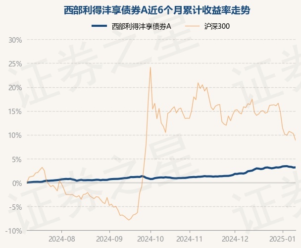 证券之星消息,1月10日,西部利得沣享债券A最新单位净值为1.0662元,累计净值为1.0962元,较前一交易日上涨0.03%。历史数据显示该基金近1个月上涨0.79%,近3个月上涨2.23%,近6个月上涨3.17%,近1年上涨5.96%。该基金近6个月的累计收益率走势如下图: