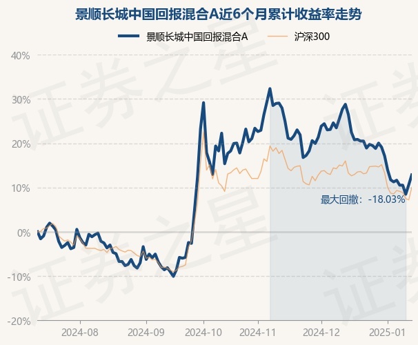 证券之星消息,1月13日,景顺长城中国回报混合A最新单位净值为1.187元,累计净值为1.624元,较前一交易日上涨1.98%。历史数据显示该基金近1个月下跌12.53%,近3个月下跌2.06%,近6个月上涨10.62%,近1年下跌4.74%。该基金近6个月的累计收益率走势如下图: