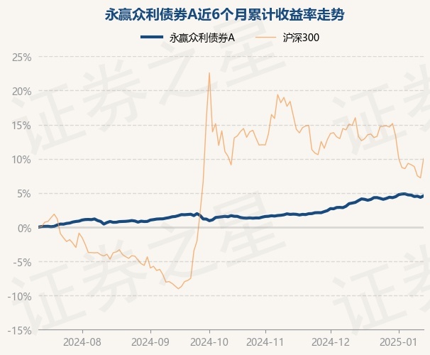 证券之星消息,1月13日,永赢众利债券A最新单位净值为1.1851元,累计净值为1.2426元,较前一交易日下跌0.16%。历史数据显示该基金近1个月上涨0.46%,近3个月上涨2.86%,近6个月上涨4.36%,近1年上涨7.96%。该基金近6个月的累计收益率走势如下图:
