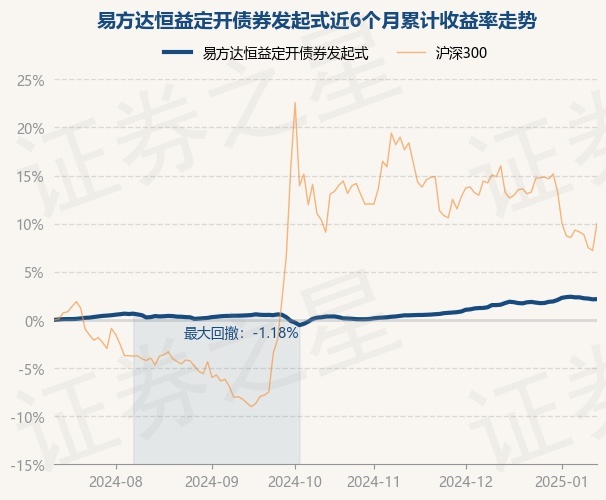 证券之星消息,1月13日,易方达恒益定开债券发起式最新单位净值为1.0277元,累计净值为1.3077元,较前一交易日下跌0.08%。历史数据显示该基金近1个月上涨0.38%,近3个月上涨2.32%,近6个月上涨2.14%,近1年上涨5.16%。该基金近6个月的累计收益率走势如下图: