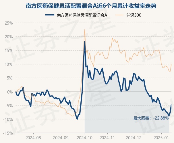 证券之星消息,1月14日,南方医药保健灵活配置混合A最新单位净值为1.894元,累计净值为2.109元,较前一交易日上涨3.02%。历史数据显示该基金近1个月下跌6.47%,近3个月下跌11.48%,近6个月下跌4.78%,近1年下跌10.15%。该基金近6个月的累计收益率走势如下图: