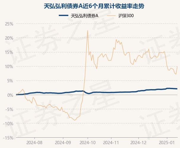 证券之星消息,1月14日,天弘弘利债券A最新单位净值为1.1185元,累计净值为1.5809元,较前一交易日下跌0.02%。历史数据显示该基金近1个月上涨0.34%,近3个月上涨1.26%,近6个月上涨2.07%,近1年上涨7.39%。该基金近6个月的累计收益率走势如下图: