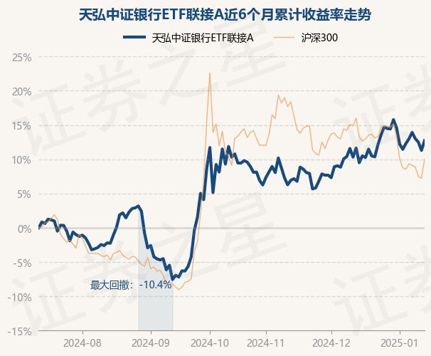 证券之星消息,1月14日,天弘中证银行ETF联接A最新单位净值为1.594元,累计净值为1.594元,较前一交易日上涨1.28%。历史数据显示该基金近1个月上涨2.94%,近3个月上涨1.1%,近6个月上涨12.72%,近1年上涨36.59%。该基金近6个月的累计收益率走势如下图: