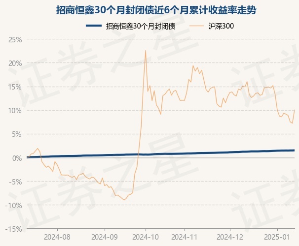 证券之星消息,1月14日,招商恒鑫30个月封闭债最新单位净值为1.0038元,累计净值为1.0599元,较前一交易日上涨0.02%。历史数据显示该基金近1个月上涨0.24%,近3个月上涨0.8%,近6个月上涨1.49%,近1年上涨5.59%。该基金近6个月的累计收益率走势如下图: