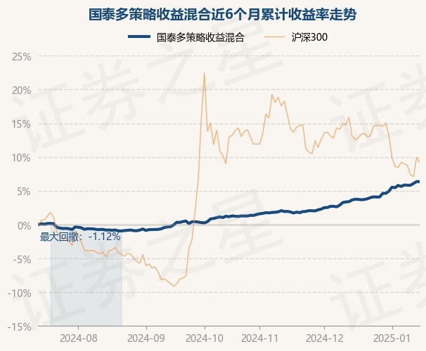 证券之星消息,1月15日,国泰多策略收益混合最新单位净值为1.4336元,累计净值为1.4336元,较前一交易日下跌0.01%。历史数据显示该基金近1个月上涨2.62%,近3个月上涨5.16%,近6个月上涨6.35%,近1年上涨5.41%。该基金近6个月的累计收益率走势如下图: