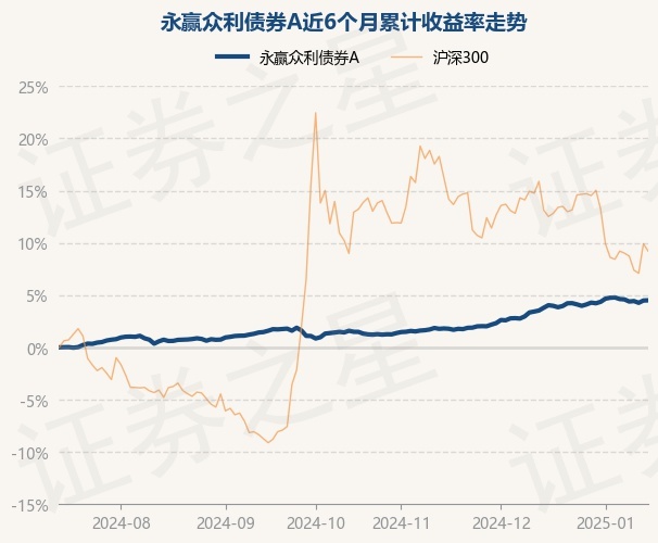 证券之星消息,1月15日,永赢众利债券A最新单位净值为1.1878元,累计净值为1.2453元,较前一交易日上涨0.02%。历史数据显示该基金近1个月上涨0.69%,近3个月上涨2.97%,近6个月上涨4.5%,近1年上涨8.2%。该基金近6个月的累计收益率走势如下图: