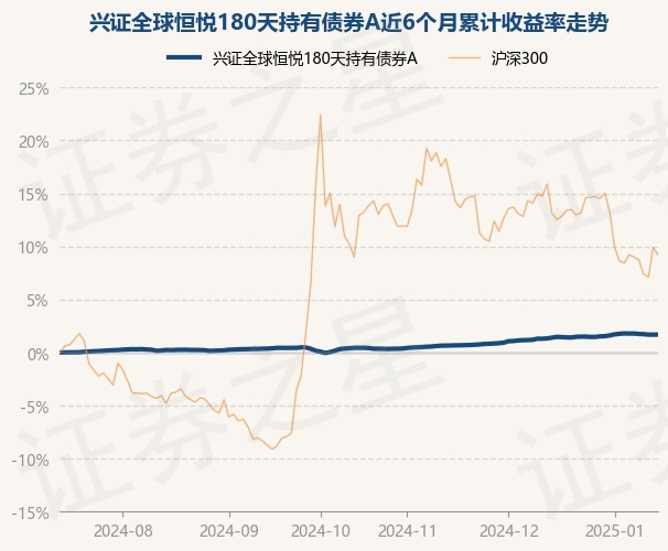 证券之星消息,1月15日,兴证全球恒悦180天持有债券A最新单位净值为1.1329元,累计净值为1.1329元,较前一交易日上涨0.01%。历史数据显示该基金近1个月上涨0.29%,近3个月上涨1.31%,近6个月上涨1.7%,近1年上涨3.95%。该基金近6个月的累计收益率走势如下图: