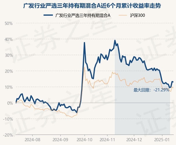 广发行业严选三年持有期混合A为混合型-偏股基金,根据最新一期基金季报显示,该基金资产配置:股票占净值比93.62%,债券占净值比3.18%,现金占净值比5.16%。基金十大重仓股如下: