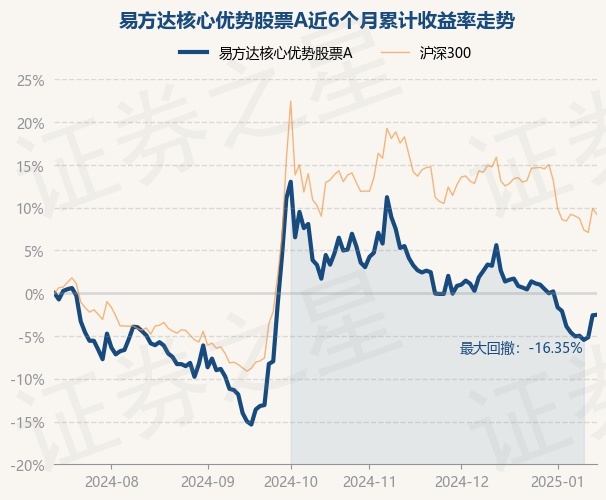 证券之星消息,1月15日,易方达核心优势股票A最新单位净值为0.664元,累计净值为0.664元,较前一交易日上涨0.06%。历史数据显示该基金近1个月下跌5.05%,近3个月下跌6.15%,近6个月下跌2.52%,近1年上涨4.16%。该基金近6个月的累计收益率走势如下图: